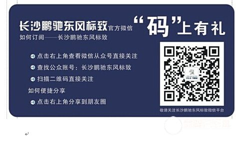 空調清涼行動: 1、298元即可享受價值558元空調清涼套餐(含價值160元空調清涼檢測和價值398元空調護理套裝); 2、購買活性炭空調濾芯即可獲贈一份精美禮品(3M口罩一對或臺歷)。 注:2014年購車客戶進店即可贈送紀念車貼一對。 空氣清新行動: 1、東風標致原廠車載空氣凈化器最高直降600元優(yōu)惠 2、購買三元催化器保養(yǎng)劑,贈東風標致精美禮品一份(環(huán)保無紡布袋一個)。 輕松收獲行動: 1、凡進店維修保養(yǎng)(保險理賠除外)滿500元贈送原廠玻璃清洗液一瓶。 2、凡進店維修保養(yǎng)(保險理賠除外)滿1000元贈送原廠玻璃清洗液一瓶及原廠車載充電器一個。 買標致,首選長沙鵬馳 銷售熱線:0731-82832398 82832399 服務熱線:0731-82832397 82832378 地址:長沙市天心區(qū)雀園路(芙蓉南路省政府往南3公里) 長沙市鵬馳汽車銷售有限公司 2009年神龍汽車有限公司“戰(zhàn)略合作伙伴” 2010年中國湖南汽車總評榜"最受歡迎車" 2010年東風標致獅王爭霸賽全國10強 2012年東風標致售后服務顧問競賽總冠軍“金獅獎” 2013年東風標致銷售顧問獅王爭霸賽榮獲“銀獅獎” 2013年度榮獲東風標致市場營銷十佳經(jīng)銷商 2014年東風標致種子講師獅王爭霸賽榮獲“前十強” 2014年成為“東風標致卓越經(jīng)銷商” 2014年度榮獲東風標致市場營銷十佳經(jīng)銷商