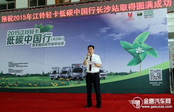 就著南方梅雨季節(jié)的陣陣小雨,“2015江鈴輕卡低碳中國行暨全國巡回節(jié)油體驗營”轉(zhuǎn)站來到長沙。以前只知道湖南菜夠火辣、長沙妹坨夠熱情,萬萬沒想到,長沙站低碳中國行節(jié)油體驗營的選手們、江鈴經(jīng)銷商、長沙江鈴意向客戶、和來自全國各地及長沙的媒體朋友們,也都是那么的火辣熱情,在節(jié)油賽活動現(xiàn)場演出了現(xiàn)實版的“速度與激情”。 按照節(jié)油體驗營的正;顒訒r間是9點半簽到,10點左右正式開始啟動。但早在上午八點半,就已經(jīng)有熱情的選手和意向客戶們到達了湖南全順江鈴汽車銷售有限公司江鈴展廳內(nèi)等待參加活動,令工作人員大大出乎意料。10點鐘,活動正式啟動。江鈴汽車銷售有限公司中區(qū)銷售經(jīng)理朱偉、湖南全順江鈴汽車銷售有限公司品牌經(jīng)理佘高慰分別代表江鈴汽車和經(jīng)銷商為活動致辭,號召大家共同投身低碳環(huán)保公益事業(yè)、并預(yù);顒映晒。佘高慰經(jīng)理致辭前,一直電話不斷,甚至是拿著電話走上舞臺,主持人調(diào)侃到:“打電話是來買車的吧?湖南全順江鈴汽車銷售有限公司果然是車賣得多、賣得好啊!”