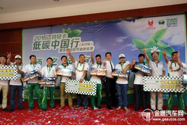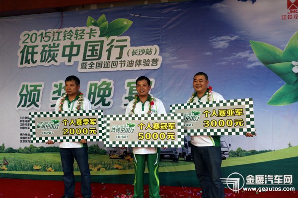 這次趣味賽報名的選手格外多,總共有22人。原來節(jié)油賽選手也沒閑著,基本都報了名,在節(jié)油比賽間歇抽空比試。沒辦法,技術(shù)高就可以三心二意啊,技術(shù)高就是可以任性地游刃有余啊。說技術(shù)高真的是高,節(jié)油賽第二輪結(jié)束后,出現(xiàn)了一位讓大家目瞪口呆的人物,他會不會是今天的冠軍呢? 醉翁之意不在酒的冠軍 焦灼和歡樂的比賽結(jié)束后,馬上進入頒獎晚宴。湖南全順江鈴汽車銷售有限公全體工作人員盡足了地主之誼,品牌經(jīng)理佘高慰、全體裁判員頻頻上臺敬酒,讓遠近到來的賓客充分享受了禮遇之喜。 最激動人心的時刻終于來了:冠亞季軍到底是誰呢?是不是讓我們目瞪口呆的那位人物呢?不賣關(guān)子了,確實是,為什么讓大家目瞪口呆呢,因為實在是太省油了!外掛油箱解下去稱重的那一刻,現(xiàn)場觀眾心里都明白了,就像基本沒動一樣。本場冠軍叫劉勤松,油耗僅為6.19L,而第二名的油耗為6.54L,相信關(guān)注江鈴低碳中國行節(jié)油體驗營的看客們都明白,這兩個成績其實都非常有競爭力,長沙的選手真是省! 頒獎時,主持人詢問冠亞季軍是抱著怎樣的心情來參加比賽,三位竟然都不約而同地說:就是來試試、就是來玩玩、沒想那么多……原來醉翁之意不在酒,都不沖著冠軍來的,而是在心態(tài)上輕裝上陣?梢姡長沙站節(jié)油賽的致勝秘籍就是:放松賽、開心玩,麻煩想?yún)①惖倪x手們記在小本子上。