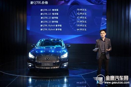 新英菲尼迪Q70L驚艷亮相 眾車型備受矚目 新英菲尼迪Q70L成為本屆車展最耀眼的明星之一。這款新近上市的車型,相比舊款進(jìn)行了多達(dá)27處的升級。外觀設(shè)計秉承英菲尼迪“沖突美學(xué)”的設(shè)計精髓,以自然元素為靈感來源,將“力量”與“浪漫”完美融合。憑借3,050mm的軸距,打造同級領(lǐng)先的后排空間和乘坐舒適性,并通過全面的隔音處理和全新設(shè)計的減震系統(tǒng),營造更加舒適靜謐的乘坐氛圍。內(nèi)飾則將甄選材質(zhì)與至瑧工藝完美結(jié)合,展現(xiàn)奢華感官體驗(yàn)。此外,同級唯一全系標(biāo)配的電吸后車門和后備廂蓋,獨(dú)有的森林空調(diào)系統(tǒng)及可單獨(dú)操作的后排娛樂系統(tǒng)等豐富配置,則展現(xiàn)出對駕乘者的貼心關(guān)懷。  新Q70L提供兩種動力選擇,其中榮膺“沃德十佳發(fā)動機(jī)”的VQ25HR V6自然吸氣發(fā)動機(jī),最大凈功率達(dá)到163kW,不僅動力強(qiáng)勁、響應(yīng)迅速,更具有“羽毛”般的平順輸出特性。3.5升V6高性能混合動力系統(tǒng),以性能為導(dǎo)向,系統(tǒng)綜合功率高達(dá)261kW,零至百公里/小時加速僅需5.1秒,百公里油耗低至7.3升。出自于英菲尼迪家族FM前中置平臺,新Q70L實(shí)現(xiàn)了接近50:50的均衡配重比,采用與跑車相同的前雙叉臂、后多連桿獨(dú)立懸架,帶來同級領(lǐng)先的性能表現(xiàn)。  新Q70L的安全屏障系統(tǒng)得到升級,新增全球首創(chuàng)的超視距前端碰撞預(yù)警系統(tǒng)(PFCW)、倒車碰撞預(yù)防系統(tǒng)(BCI),帶移動物體監(jiān)測功能的全景式監(jiān)控影像系統(tǒng)(AVM)以及增強(qiáng)型剎車輔助系統(tǒng) (FEB),將安全性提升至全新高度。此外,新Q70L享有整車4年/10萬公里免費(fèi)保修保養(yǎng)及24小時道路救援,混合動力系統(tǒng)則專享6年/15萬公里免費(fèi)延長保修服務(wù),讓消費(fèi)者的旅途更加安心無憂。  除了新Q70之外,英菲尼迪“50家族”成員Q50L和QX50、商務(wù)艙級豪華七座SUV QX60、先鋒跑車型SUV QX70、豪華全尺寸SUV QX80及特立獨(dú)型的緊湊運(yùn)動SUV ESQ同樣展示出非凡的產(chǎn)品魅力,受到了現(xiàn)場眾人的矚目。