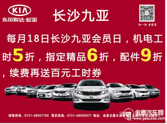 1+1+1=4你信么? 長沙九亞讓你不得不信,金秋保養(yǎng)鉅惠買三送一活動啟動!價格清涼到底! 即日起到長沙九亞保養(yǎng)的韓系車主福利到了!不僅優(yōu)質(zhì)服務(wù),更享金秋保養(yǎng)套餐盛惠! 韓系車主到店26項免費(fèi)檢測,同時還可辦理會員享受會員日工時、配件、精品三項優(yōu)惠政策!更有推薦入會獎勵,新車入會禮品等好禮相送!  老客戶續(xù)保即可獲得續(xù)保禮包,續(xù)保金額超過5188還送泰國雙人游! 從本月起-2015年12月31日,每月18日設(shè)定長沙九亞會員日,會員日會員可享受活動政策為:會員日當(dāng)天到店客戶,可享受機(jī)電工時5折優(yōu)惠;可享受精品6折優(yōu)惠;可享受配件9折優(yōu)惠,同時本月會員續(xù)費(fèi)還可獲得百元工時券。  小編提前偷偷告訴您”會員日當(dāng)天三大鉅惠精品價格:DVD導(dǎo)航僅需1980哦!”一般人我不告訴他。 買起亞,到長沙九亞;提現(xiàn)車,就來車型最全的九亞店;想優(yōu)惠,馬上到金星北路的九亞店;做保養(yǎng),當(dāng)然是到專享VIP服務(wù)的九亞! 銷售熱線:0731-88557700 服務(wù)熱線:0731-88550077 會員專線:0731-88550077 地址:長沙市金星北路四段599號九城汽車文化園內(nèi)(大湖林場公交車附近) 新浪微博:http://weibo.com/u/5056938924 騰訊微博:http://t.qq.com/csjy_201403