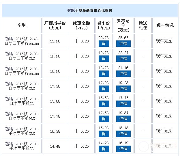 近日,本店內(nèi)智跑現(xiàn)車銷售,顏色可選,目前購車部分車型可優(yōu)惠0.20萬元,感興趣的朋友可以到店咨詢購買,詳情見下表:
