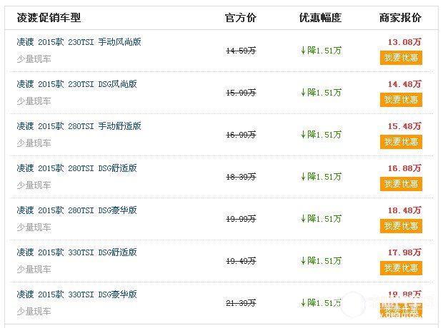 湖南世華上海大眾店內(nèi)凌渡有少量現(xiàn)車,近期購車最高優(yōu)惠1.51萬。感興趣的朋友不妨撥打咨詢熱線0731-82832888或到店咨詢。相關車型及報價如下表: 湖南世華汽車銷售服務有限公司 【銷售熱線】:0731-82832888 【服務熱線】:0731-82885858 【公眾微信】:svw2410109(湖南世華大眾) 【官方微博】:http://weibo.com/hunanshihua 【公司地址】:長沙市長沙大道546號(機場高速入口處) |