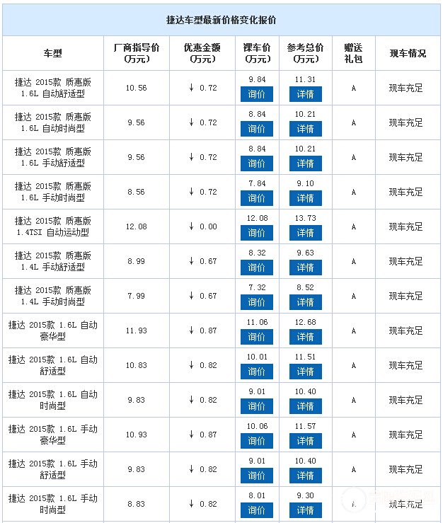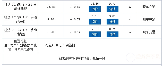 想要價格低,抬頭看這里,價格絕對讓您滿意,近日,本店內(nèi)一汽-大眾捷達現(xiàn)車銷售,顏色可選,目前購車部分車型可優(yōu)惠0.87萬元,感興趣的朋友可以到店(長沙縣星沙永通一汽-大眾店內(nèi))咨詢,購車就享低率、高補貼、精美好禮,免費VIP網(wǎng)銷心動熱線:0731-82870978