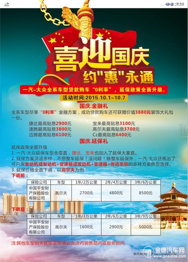 福利來啦!喜迎國慶,約"惠"永通, 一汽-大眾全系車型貸款購車“0利率”,延保政策全面升級。