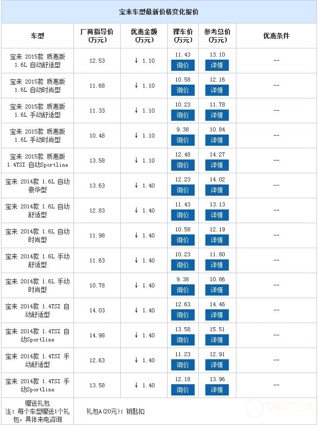 近日,本店內(nèi)寶來現(xiàn)車銷售,顏色可選,目前購車部分車型可優(yōu)惠1.40萬元,感興趣的朋友可以到店咨詢購買,詳情見下表: