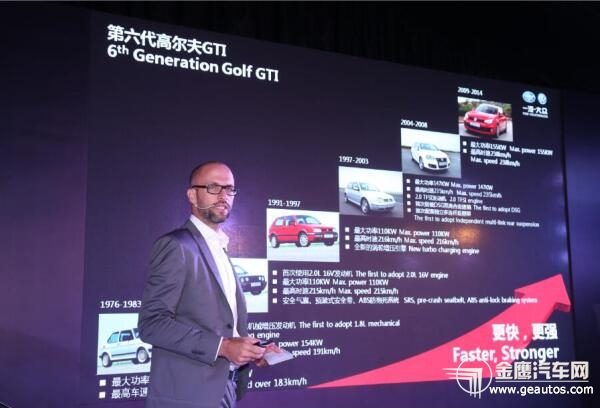 一汽-大眾造型設計師Peter Ortlib先生在試駕前分享高爾夫GTI的40年品牌文化和經(jīng)典設計傳承 今天,基于第七代高爾夫打造的全新高爾夫GTI,更以162kW的最大功率、350N?m的最大扭矩和240km的最高時速,在向它的前輩致敬的同時,再度刷新記錄。還是讓我們趕快先睹為快,先試盡興吧。 犀利而熱烈:簡約設計難掩運動鋒芒 走近全新高爾夫GTI,我們首先看到的是它擁有比第六代高爾夫GTI更加寬大的車身。與上一代車型相比,全新高爾夫GTI的軸距增長了53 mm,車長、車寬分別增加62 mm與13 mm,整車造型風格也變得更加犀利。標志性的戰(zhàn)斧輪轂,GTI專屬蜂窩格柵,霸氣的“虎牙型”前霧燈……都在不經(jīng)意間暴露出它蘊含于內(nèi)的運動屬性。 有性能,不張揚,高爾夫GTI只屬于懂它的人。前臉設計在延續(xù)GTI經(jīng)典設計語言的基礎上又加以創(chuàng)新,一條貫穿前格柵的犀利紅線,打破了傳承幾代GTI車型的雙紅線設計,并且延伸至兩側的前大燈之內(nèi),帶來強烈的延展、拉伸的視覺效果。側面線條簡潔流暢而又不失運動,首次出現(xiàn)在車身側面的“刀鋒”狀GTI徽標,足以吸引任何從它身邊經(jīng)過的目光,全新設計的GTI專屬18吋"Austin"鏡面戰(zhàn)斧鋁合金輪轂+225/40/R18高性能運動輪胎,配合紅色制動卡鉗以及大尺寸剎車盤,充滿了力量感,讓人有一種躍躍欲試的沖動。無論從哪個方向看過去,全新高爾夫GTI都顯得英氣逼人。