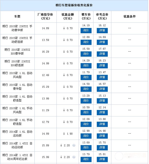近日,申湘上海大眾星沙眾興店內(nèi)朗行現(xiàn)車銷售,顏色可選,目前購車部分2015款全新朗行車型可優(yōu)惠0.70萬元,2013款朗行特供鉅惠2.2萬元。感興趣的朋友可以到店咨詢購買,詳情見下表: