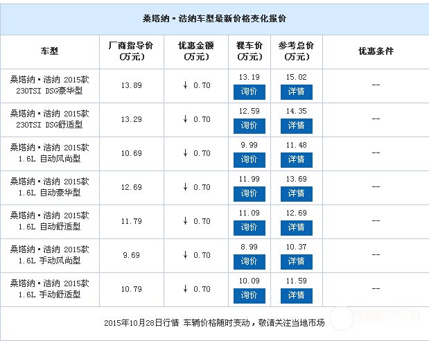 近日,申湘上海大眾星沙眾興店內(nèi)桑塔納·浩納現(xiàn)車銷售,顏色可選,目前購車部分車型可優(yōu)惠0.70萬元,感興趣的朋友可以到店咨詢購買,詳情見下表: