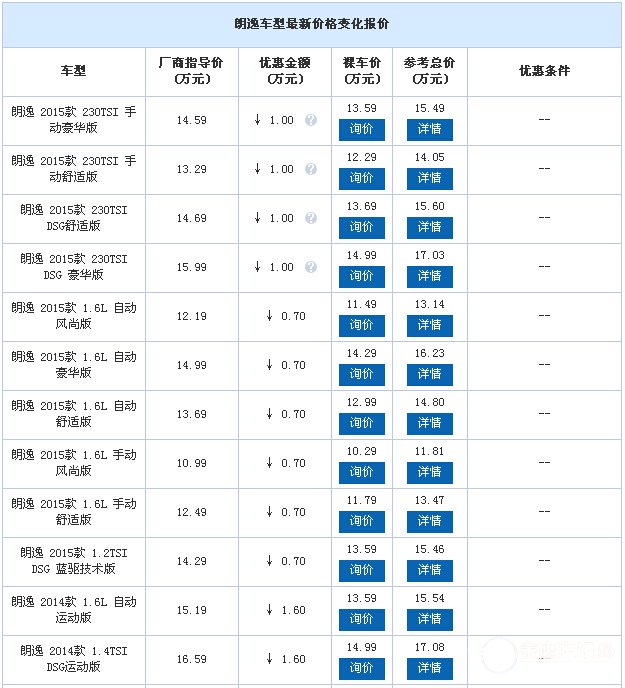 近日,申湘上海大眾星沙眾興店內(nèi)朗逸現(xiàn)車銷售,顏色可選,目前購車部分2013/14款車型最高可優(yōu)惠1.60萬元,2015款全新朗逸部分車款最高可優(yōu)惠1萬元。感興趣的朋友可以到店咨詢購買,詳情見下表: