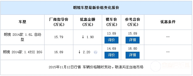 近日,申湘上海大眾星沙眾興店內(nèi)朗境現(xiàn)車銷售,顏色可選,目前購車部分車型可優(yōu)惠2.2萬元,感興趣的朋友可以到店咨詢購買,詳情見下表:
