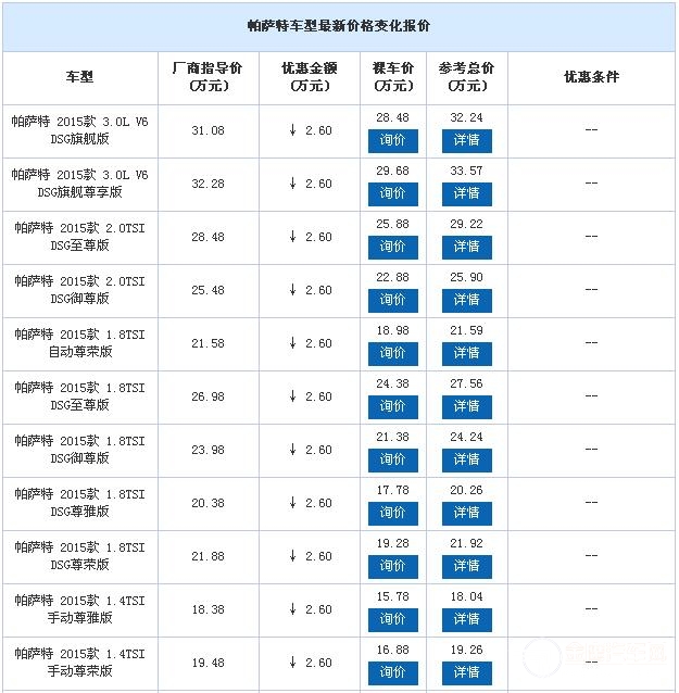 近日,本店內(nèi)帕薩特現(xiàn)車銷售,顏色可選,目前購車部分車型可優(yōu)惠2.60萬元,送裝飾+送廠家禮包(可折現(xiàn)3000);感興趣的朋友可以到店咨詢購買,詳情見下表:
