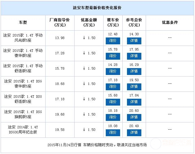 近日,申湘上海大眾星沙眾興店內(nèi)途安現(xiàn)車銷售,顏色可選,目前購車部分車型可優(yōu)惠1.50萬元,感興趣的朋友可以到店咨詢購買,詳情見下表: