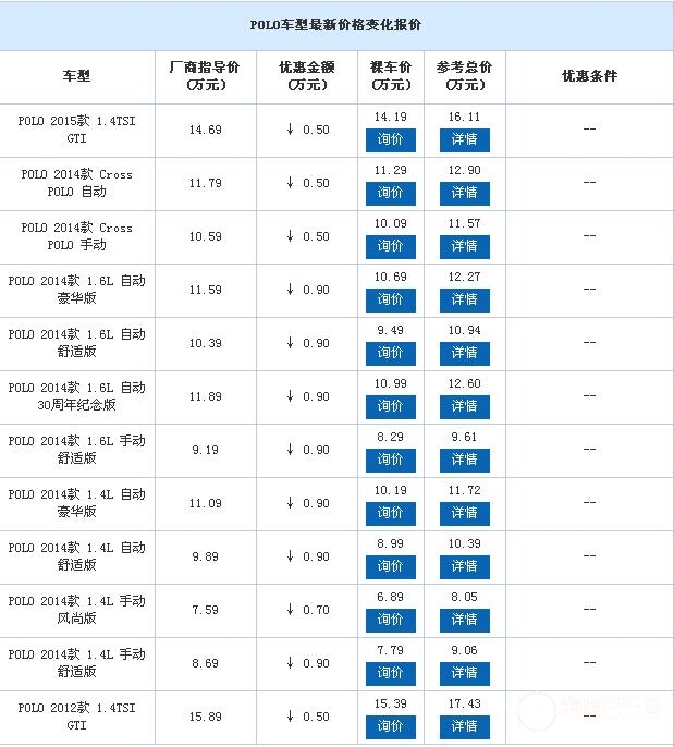 近日,申湘上海大眾星沙眾興店內(nèi)POLO現(xiàn)車(chē)銷(xiāo)售,顏色可選,目前購(gòu)車(chē)部分車(chē)型可優(yōu)惠0.90萬(wàn)元,感興趣的朋友可以到店咨詢(xún)購(gòu)買(mǎi),詳情見(jiàn)下表: