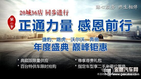 正通力量,感恩前行,雙12展廳超級搶購會與國際車展同步,優(yōu)惠不變。全國聯(lián)動的年終盛宴。中國正通集團(tuán)旗下捷豹、路虎、沃爾沃、奔馳20城36店同慶,一年僅此一次,優(yōu)惠力度巨大。同時,雙十二超級搶購會巧遇第十一屆長沙國際車展,碰撞出的精彩火花你一定不能錯過。