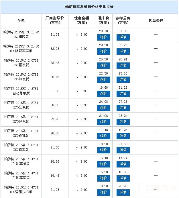 近日,申湘上海大眾星沙眾興店內(nèi)帕薩特現(xiàn)車銷售,顏色可選,目前購車部分車型可優(yōu)惠2.90萬元,送裝飾再送廠家禮包(可折現(xiàn)3000),感興趣的朋友可以到店咨詢購買,詳情見下表: