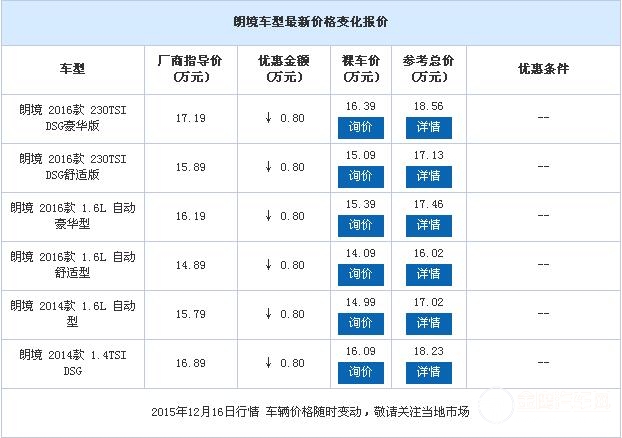 近日,申湘上海大眾星沙眾興店內(nèi)朗境現(xiàn)車(chē)銷(xiāo)售,顏色可選,目前購(gòu)車(chē)部分車(chē)型可優(yōu)惠0.80萬(wàn)元,感興趣的朋友可以到店咨詢(xún)購(gòu)買(mǎi),詳情見(jiàn)下表: