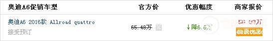 華洋奧迪河西麓谷店內(nèi)進(jìn)口奧迪A6預(yù)定銷(xiāo)售,顏色可選,目前購(gòu)車(chē)部分車(chē)型可優(yōu)惠6.6萬(wàn)元,感興趣的朋友不妨在頁(yè)面下方留下您的聯(lián)系電話(huà),我們會(huì)有專(zhuān)業(yè)的銷(xiāo)售為您服務(wù),或直接到店咨詢(xún)。相關(guān)車(chē)型及報(bào)價(jià)如下表: