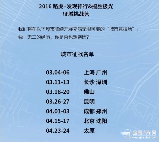 城市,亦是充滿挑戰(zhàn)的競(jìng)技場(chǎng), 路虎-發(fā)現(xiàn)神行&攬勝極光, 全能全地形SUV+時(shí)尚新銳SUV, 共赴“征城挑戰(zhàn)營(yíng)”,邀你來(lái)戰(zhàn)!