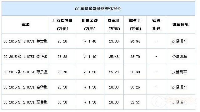 湖南華洋4S店一汽-大眾CC現(xiàn)車充足,顏色可選,目前綜合優(yōu)惠最高1.5萬元(已到店為準),購車贈豪華大禮包,感興趣的朋友可以來電咨詢或到店咨詢購買,貴賓熱線:85048888
