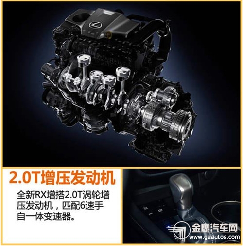 激情駕駛體驗 全新RX分為200t和450h兩種車型,其中200t為新增車型,RX200t搭載一款更小排量的2.0T渦輪增壓發(fā)動機,匹配6速手自一體變速器,該發(fā)動機動力輸出強勁,最大功率173kW,最大扭矩則達(dá)到350Nm,全面超越RX270搭載的2.7L自然吸氣發(fā)動機,排量降低的同時還可以獲得更為強勁的動力輸出,全新RX的競爭力得到大幅提升。