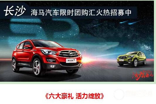 簽到禮 高檔精美茶具 “周年店慶 榮耀盛宴”11月20日,海馬汽車長沙捷程鋒銳店為廣大海馬用戶打造底價團購活動,當天到店即可享受超優(yōu)惠價格,也歡迎廣大海馬用戶們及時來電先行溝通試駕和說出心中的優(yōu)惠價格,我們會在當天給出更有優(yōu)勢的價格和豐富的獎品助您購車一臂之力。