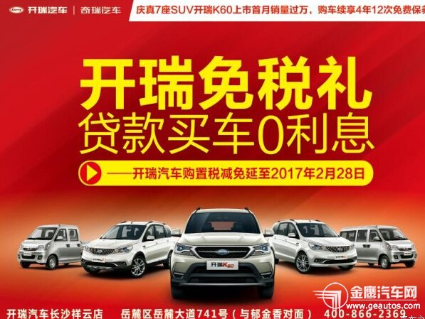 朝九晚五,天天只為工作忙,就等歲末年終獎。但扳著指頭算一算,還貸過后兩茫茫,說好新年添新物,如今只能想一想。偏偏晴空還來了一道霹靂響——2017年全年對購置1.6升及以下排量的乘用車按7.5%的稅率征收車輛購置稅,這就意味著,已經(jīng)實施一年多的購置稅減半優(yōu)惠政策正式終結(jié)。購車成本上漲一大截,很多朋友都后悔沒有早點下手,頓時覺得小二輪換成小四輪的新年愿望分分鐘要破滅了…… 為了助各位小伙伴早日實現(xiàn)購車愿望,開瑞汽車給大家重來一次的機會??? 機會說來就來,新年到來,為回饋廣大消費者對開瑞汽車的支持與厚愛,開瑞汽車特別推出“開瑞免稅禮 貸款買車0利息”新春促銷活動,最大的亮點就在于自2017年1月1日-2月28日期間,繼續(xù)延續(xù)購置稅減免政策!