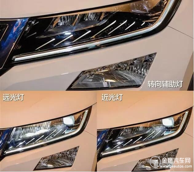 燈光采用水晶元素設(shè)計(jì),看上去十分通透,發(fā)光形式全為LED,并配有轉(zhuǎn)向輔助燈。