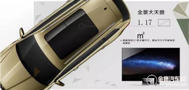 超越同級SUV的天窗尺寸,相當(dāng)于65寸平板電視的面積。