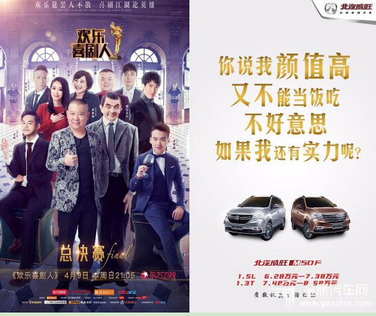 看這個(gè)眼神就知道憨豆特工的內(nèi)心是崩潰的,他想什么呢? 所以.....  在憨豆特工發(fā)愁的時(shí)候,拍檔給了一個(gè)建議......  車叔在幽默中植入車型的形式是不是很犀利呢?其實(shí)這并不是車叔首創(chuàng),與始作俑者北汽威旺相比,車叔做的必然是小巫見(jiàn)大巫!稓g樂(lè)喜劇人》作為一檔以喜劇作品為主要情節(jié)的綜藝節(jié)目,不僅眾星云集,而且呼聲頗高,第三季也剛剛落下帷幕。自2017年3月12日起,北汽威旺成為《歡樂(lè)喜劇人》的贊助商,并將7座MPV威旺M50F作為歡樂(lè)喜劇人第三季明星指定座駕亮相全場(chǎng),攜手郭德綱、岳云鵬等當(dāng)紅喜劇明星為觀眾共同送去美好的歡樂(lè),當(dāng)然還有上面的憨豆先生哦。  這張圖片是《歡樂(lè)喜劇人》節(jié)目中的截圖,我們可以看到舞臺(tái)上的車型便是威旺M50F。小品中圍繞該車型扔出的包袱讓車叔笑得前仰后合,隧道堵車無(wú)法及時(shí)趕往婚禮現(xiàn)場(chǎng),攝像溜之大吉說(shuō)車?yán)锏摹皯颉焙芫,大媽無(wú)節(jié)操的窗簾,借口懷孕的新娘,說(shuō)著“開(kāi)著北汽威旺,倆小時(shí)就懷孕了”的無(wú)辜新郎,讓車叔不禁尷尬地遐想這車內(nèi)的空間該有多大?路上究竟發(fā)生了什么?幸好最后這一對(duì)新人共同站在威旺M50F的車頂上完成了最重要的時(shí)刻,車叔為他們激動(dòng)的同時(shí)也在感慨,威旺七座空間不僅大而且是真結(jié)實(shí)。  話說(shuō)這一次,《歡樂(lè)喜劇人》成為了北汽威旺的舞臺(tái),憑借著“質(zhì)敬生活”的主題,北汽威旺用最接地氣也是最有能量的喜劇形式向大家詮釋“喜劇人認(rèn)真搞笑,威旺認(rèn)真造車”的含義。而這種大家喜聞樂(lè)見(jiàn)、更加貼近生活的傳播形式,在擁有非常高契合度的特點(diǎn)下,不僅可以讓北汽威旺新穎的營(yíng)銷形式得以成功,也可以讓觀眾在娛樂(lè)的時(shí)光之中更好的了解北汽威旺的車型、品牌、品質(zhì)。  隨著汽車消費(fèi)的升級(jí),85后、90后成為中堅(jiān)力量,這也要求車企不斷實(shí)現(xiàn)產(chǎn)品的年輕化,來(lái)滿足市場(chǎng)的個(gè)性化需求。而《歡樂(lè)喜劇人》作為一款綜藝節(jié)目,眾多知名明星通過(guò)富有張力的喜劇表演、雅俗共賞的特點(diǎn)、迎合當(dāng)下熱點(diǎn)的段子,更加貼近年輕消費(fèi)者的生活,這也是歡樂(lè)喜劇人深受國(guó)內(nèi)觀眾追捧的原因所在。  所以在車叔看來(lái),《歡樂(lè)喜劇人》與北汽威旺可謂是珠聯(lián)璧合,因?yàn)檫@點(diǎn)與北汽威旺傾向85/90后的策略相同,在營(yíng)銷和產(chǎn)品上都貼近年輕消費(fèi)者,二者思路完美契合。另一方面在贊助關(guān)系下,這種以藝術(shù)形式為載體的傳播方法,尤其是喜劇形式著實(shí)是給力的,不僅改善了品牌與用戶溝通的橋梁,同時(shí)在方式和內(nèi)容上同樣做出了成功的轉(zhuǎn)變。  車叔結(jié)束語(yǔ):我們知道如今中國(guó)的車市是火熱的,無(wú)數(shù)的品牌、無(wú)數(shù)的車型讓消費(fèi)者眼花繚亂,好的營(yíng)銷方式和傳播途徑是重要的,但不是唯一的。因?yàn)闋I(yíng)銷方式和產(chǎn)品品質(zhì)是相輔相成的,二者缺一不可。認(rèn)真搞笑的《歡樂(lè)喜劇人》,認(rèn)真造車的北汽威旺;喜劇成為經(jīng)典,威旺擁有品質(zhì);生活里滿是笑臉,駕乘中永遠(yuǎn)舒心。作為中國(guó)人的節(jié)目要讓觀眾們笑的開(kāi)心,而作為中國(guó)人的品牌要讓消費(fèi)者用的放心。質(zhì)敬生活 笑對(duì)人生,北汽威旺,值得傾心!