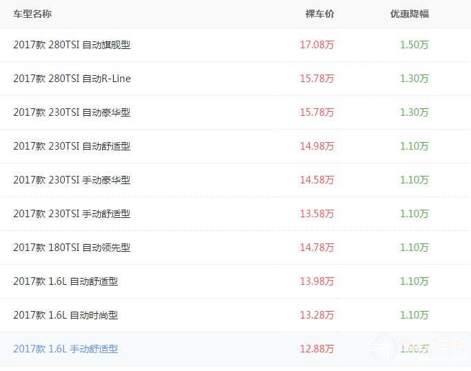 部分車型需帶裝飾出售,詳情請聯(lián)系我店銷售顧問咨詢【即日起到店預(yù)交99元提車贈(zèng)送500元油卡,500抵用券】【4月整月全城尋“寶”,上傳一汽大眾 新寶來 新速騰到指定微.信公眾號【一起大眾】即可贏取價(jià)值1500元的購車禮券,憑券到店獲取更多優(yōu)惠禮遇】【日前我店推出18臺特價(jià)車 加裝不加價(jià)】【老款捷達(dá)存量不多,價(jià)格實(shí)惠,如有需求請盡快聯(lián)系】【低首付 低利息】【高爾夫嘉旅超越城市SUV級駕乘空間】 【預(yù)約保養(yǎng)工時(shí)費(fèi)最低7折優(yōu)惠】【支持置換,補(bǔ)貼高達(dá)萬元】【部分車型首付低至2成起】 我店購車優(yōu)惠多多,禮品多多。選擇一汽大眾,選擇永通,投資理財(cái)財(cái)富增值新選擇! 1:永通集團(tuán)16年品質(zhì)如一 2:廠家標(biāo)準(zhǔn)設(shè)施服務(wù) 3:用心專業(yè)銷售服務(wù) 4:一汽大眾全車型展示、試駕 5:專業(yè)車輛評估置換。感興趣的朋友可以到店咨詢購買,詳情見下表: