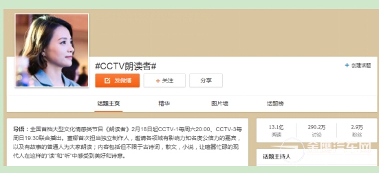 全網(wǎng)刷屏,《朗讀者》是有多火? 與國內(nèi)絕大部分商業(yè)氣息濃厚的綜藝節(jié)目相比!独首x者》以文化、人文關(guān)懷為切入點(diǎn),弘揚(yáng)的是一種“正能量”的主流價(jià)值觀。甚至《人民日?qǐng)?bào)》、《光明日?qǐng)?bào)》、《解放日?qǐng)?bào)》、《中國文化報(bào)》等國家級(jí)媒體的多次報(bào)道與點(diǎn)贊,證明這檔文化類節(jié)目得到國內(nèi)主流媒體的一致肯定與高度認(rèn)可。 此外,《朗讀者》的微博主話題#CCTV朗讀者#閱讀量超13億、在【喜馬拉雅FM】連續(xù)十一周位列經(jīng)典必聽總榜第一、最多訂閱經(jīng)典榜第一、微信公眾號(hào)閱讀量達(dá)10w+文章累計(jì)達(dá)225篇,微信指數(shù)最高達(dá)2400萬。在當(dāng)前最主流的社交媒體都能引起如此大的震動(dòng),毋庸置疑,《朗讀者》已經(jīng)抓住廣大網(wǎng)友的心。