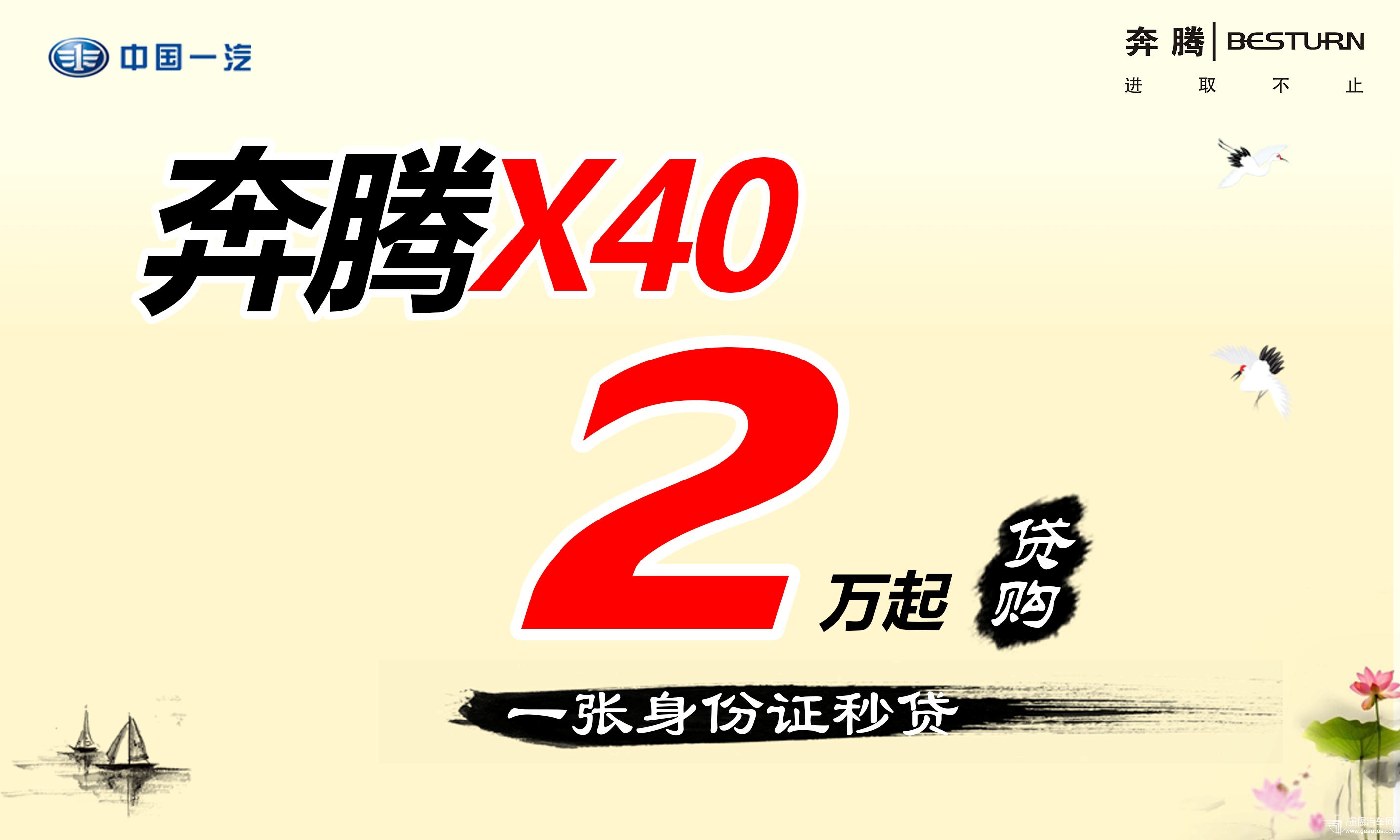 作為奔騰品牌的第二款城市SUV車型,奔騰X40基于一汽轎車全新的A級(jí)車平臺(tái)和成熟的A級(jí)車開發(fā)技術(shù),擁有超酷的顏值、寬敞的空間、強(qiáng)勁的動(dòng)力和卓越的性能。同時(shí)它搭載先進(jìn)的D-Life全語音智能互聯(lián)系統(tǒng),是A0級(jí)SUV細(xì)分市場中第一款智能互聯(lián)SUV,也是SUV市場中第一款擁有社交功能的SUV。優(yōu)惠購車,就在一汽奔騰湖南瑞思4S店! 湖南瑞思全體員工期待您的光臨! 主營車型:奔騰X80、奔騰X40奔騰B90、奔騰B70、奔騰B50、奔騰B30 地址:長沙星沙三一路118號(hào)(中南汽車 世界上三一路過跨線橋即到) qq購車專號(hào):1160267556 公眾賬號(hào):hunanruisi 官方微:http://weibo.com/bentengruisi