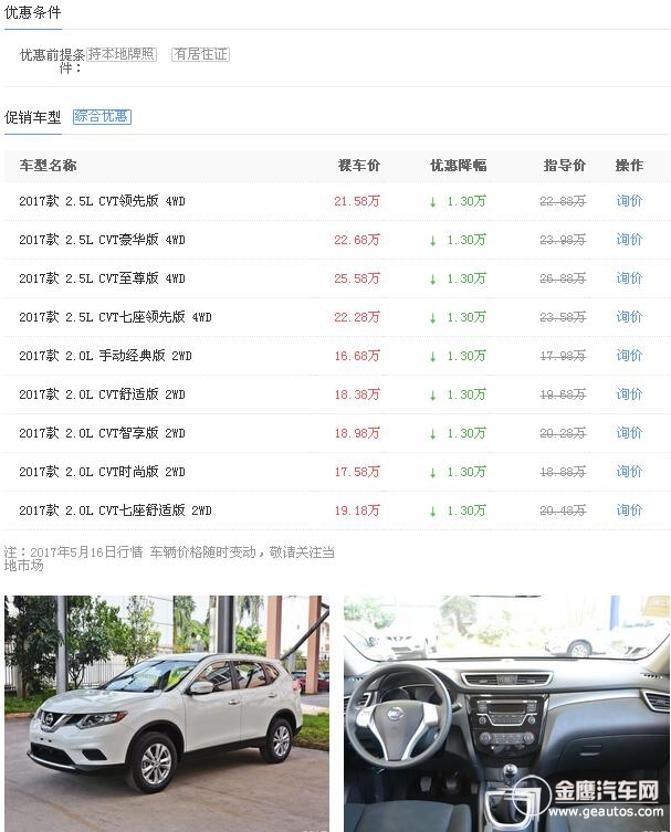 近日,本店內(nèi)奇駿現(xiàn)車銷售,顏色可選,目前購(gòu)車部分車型可優(yōu)惠1.30萬(wàn)元,感興趣的朋友可以到店咨詢購(gòu)買,詳情見(jiàn)下表: