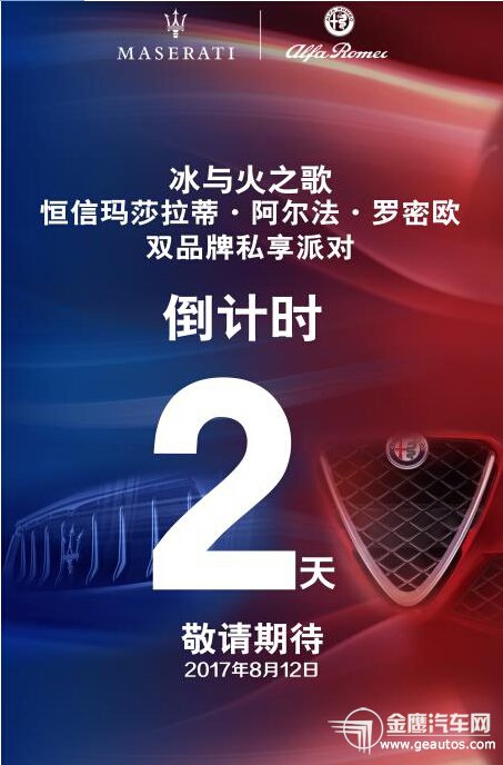 阿爾法·羅密歐:走自己的路,讓別人說去吧!風(fēng)馳電掣,把閑言碎語甩在身后,忠于自我,勇往直前。 8月12日,恒信汽車集團(tuán)聯(lián)合全國6家瑪莎拉蒂&阿爾法·羅密歐開啟“冰與火之歌”雙品牌私享派對。冰點(diǎn)價格VS火熱天氣,這絕對是一場盛會。更多小秘密持續(xù)揭曉......  活動時間: 2017年8月12日21:00 活動地點(diǎn):iLOHAS樂活酒吧 活動地址:芙蓉區(qū)瀏陽河大道與荷花東路交匯處(漫咖啡樓下) 活動福利:到場私享冰與火定制飲品一杯 聯(lián)系電話:13272073606