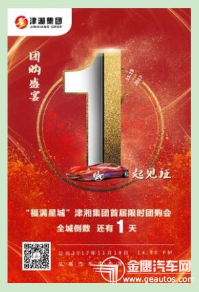 津湘集團(tuán)首屆限時(shí)汽車團(tuán)購(gòu)會(huì),倒計(jì)時(shí)1天 現(xiàn)場(chǎng)現(xiàn)金直降、豪禮派送、總裁簽售 眾多優(yōu)惠等你來拿。! 現(xiàn)場(chǎng)更有您意想不到的神秘勁爆環(huán)節(jié)! 11月18日下午14:30-16:30 限時(shí)瘋搶2小時(shí)! 千載難逢! 給你前所未有的購(gòu)車體驗(yàn)! 請(qǐng)各位朋友們奔走相告吧!