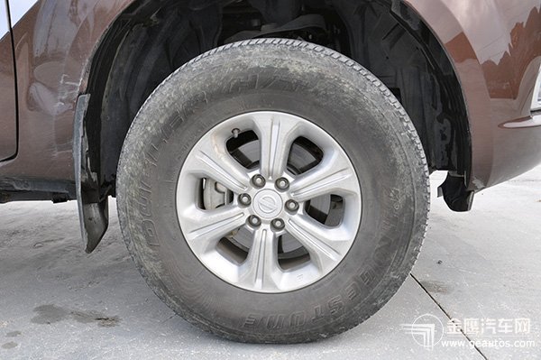納瓦拉配備的是鄧祿普全地形輪胎,尺寸是:225/70 R16 六幅式輪轂。這款試駕車的輪胎估計(jì)開(kāi)的路程比較長(zhǎng)了,外形看起來(lái)好像磨的差不多了,一看就是實(shí)用型的。