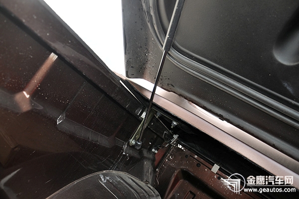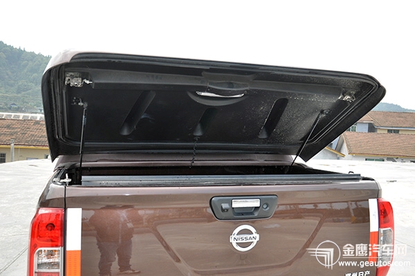尾部造型簡(jiǎn)潔明了,尾燈是豎條型設(shè)計(jì),尾門可以垂直打開(kāi)。箱體蓋是選裝件,鏈接處是用螺絲固定的,取下來(lái)也很方便。貨廂的長(zhǎng)寬高為1520/1562/475mm。