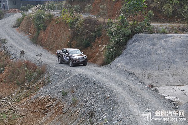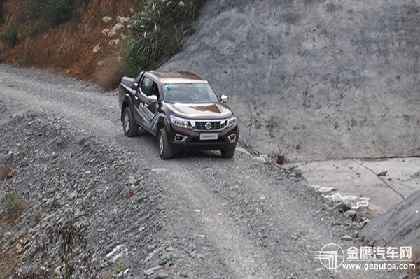 山谷里面正好在修路,鋪有松軟的沙石,而且在下到谷底時(shí),非常陡峭。這時(shí),正好可以來(lái)體驗(yàn)一下納瓦拉四驅(qū)的強(qiáng)大性能。四驅(qū)配合全地形輪胎,在松軟的沙石開(kāi)過(guò),如同平地。納瓦拉的接近角是32.4度,離去角是26.6度,接近牧馬人的標(biāo)準(zhǔn),在爬陡峭的山坡時(shí),一點(diǎn)也不用擔(dān)心會(huì)傷到底盤。