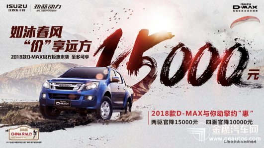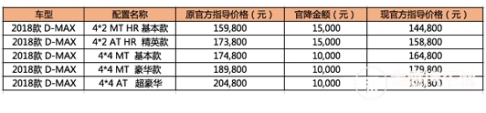 為了讓越來越多的消費(fèi)者享受到純粹皮卡帶來的高端生活體驗(yàn),江西五十鈴攜D-MAX以實(shí)力真情回饋新老用戶,“如沐春風(fēng),’價(jià)’享遠(yuǎn)方”新春鉅惠活動(dòng)全面來襲。即日起,購買2018款D-MAX即可尊享多重優(yōu)惠,四驅(qū)車型官方直降10000元,兩驅(qū)車型官方直降15000萬元。詳情見下表: