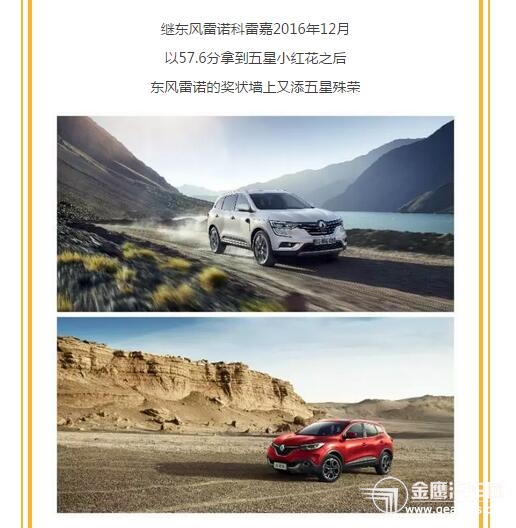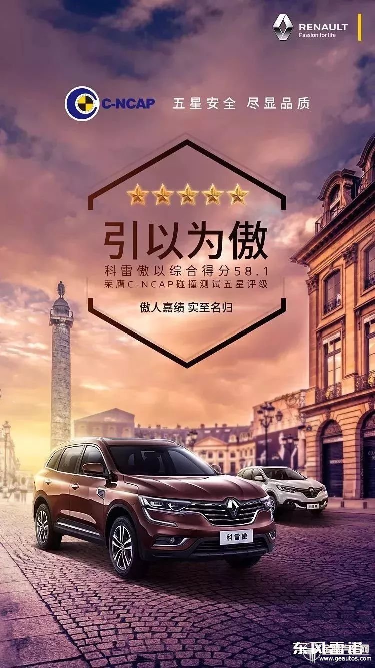 “雙五星”降臨!科雷傲獲C-NCAP碰撞測試五星評級!