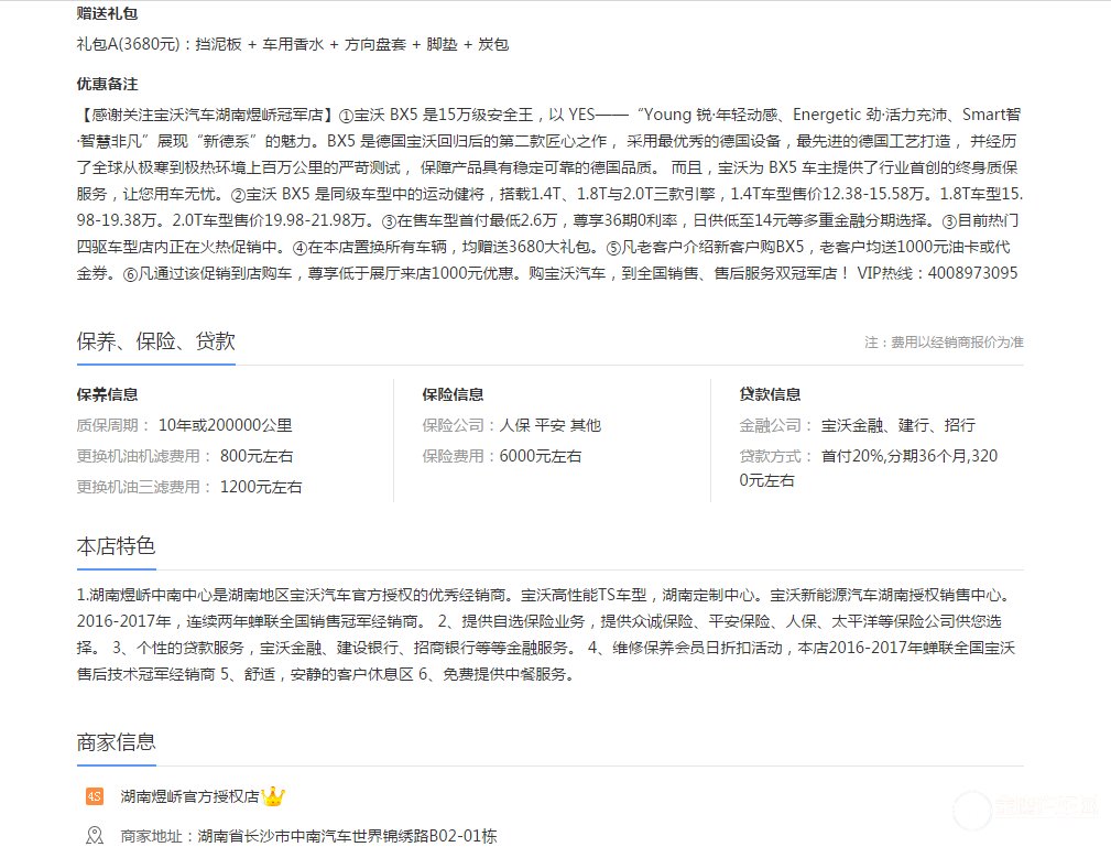 【感謝關(guān)注寶沃汽車湖南煜嶠冠軍店】①寶沃 BX5 是15萬級(jí)安全王,以 YES——“Young 銳·年輕動(dòng)感、Energetic 勁·活力充沛、Smart智·智慧非凡”展現(xiàn)“新德系”的魅力。BX5 是德國寶沃回歸后的第二款匠心之作, 采用最優(yōu)秀的德國設(shè)備,最先進(jìn)的德國工藝打造, 并經(jīng)歷了全球從極寒到極熱環(huán)境上百萬公里的嚴(yán)苛測試, 保障產(chǎn)品具有穩(wěn)定可靠的德國品質(zhì)。 而且,寶沃為 BX5 車主提供了行業(yè)首創(chuàng)的終身質(zhì)保服務(wù),讓您用車無憂。②寶沃 BX5 是同級(jí)車型中的運(yùn)動(dòng)健將,搭載1.4T、1.8T與2.0T三款引擎,1.4T車型售價(jià)12.38-15.58萬。1.8T車型15.98-19.38萬。2.0T車型售價(jià)19.98-21.98萬。③在售車型首付最低2.6萬,尊享36期0利率,日供低至14元等多重金融分期選擇。③目前熱門四驅(qū)車型店內(nèi)正在火熱促銷中。④在本店置換所有車輛,均贈(zèng)送3680大禮包。⑤凡老客戶介紹新客戶購BX5,老客戶均送1000元油卡或代金券。⑥凡通過該促銷到店購車,尊享低于展廳來店1000元優(yōu)惠。購寶沃汽車,到全國銷售、售后服務(wù)雙冠軍店!
