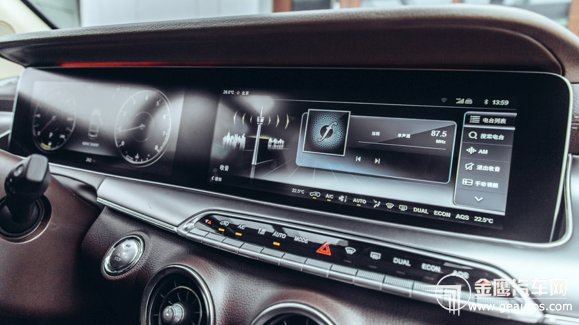 接通車內(nèi)電源,組合儀表和中控上方的雙12.3寸一體式全液晶高清顯示屏同時點亮,美輪美奐,極具視覺沖擊力。虛擬組合儀表可以有三種不同的主題風(fēng)格選擇:經(jīng)典、運動和炫酷。