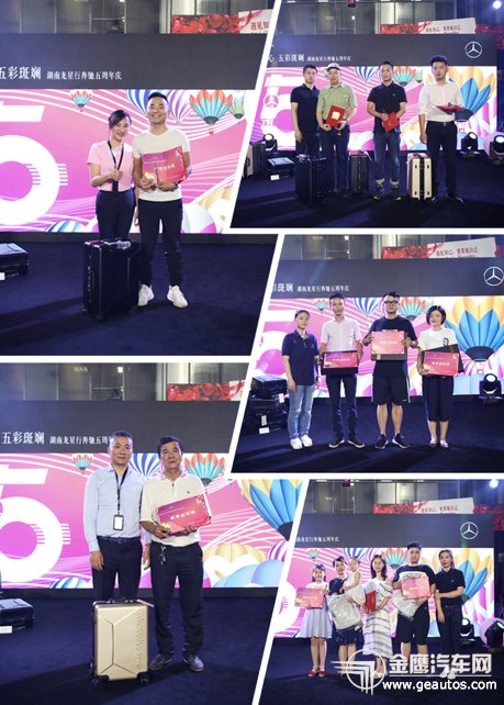 為感謝廣大車主朋友們五年來的相伴,湖南龍星行奔馳除了準(zhǔn)備多輪微信抽獎、互動小游戲、精彩的小丑表演之外,還特別設(shè)置了最佳專一獎、最佳貢獻獎、最佳踴躍獎、最佳金項獎、最佳信任獎等獎項,車主一一上臺領(lǐng)取了感恩禮。