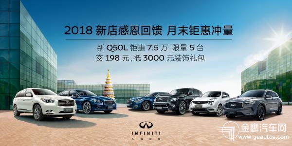 新店感恩大回饋! 月末鉅惠大沖量! 新Q50L鉅惠7.5萬,限量5臺! 交198元,抵3000元裝飾禮包! 活動規(guī)模大!禮品派送多!驚喜連連! 預交198元購買門票,購車抵3000元裝飾大禮包 新Q50L鉅惠7.5萬,限量5臺,售完即止 全新QX50購車享2年保險補貼、3年免費保養(yǎng) 活動期間訂車,砸金蛋贏豪禮,英菲尼迪原廠戶外防潮墊、車載多功能手機支架、旅行轉(zhuǎn)換頭、牛皮手拿包、無線充電器等 舊車免費評估,高于市場價回收,最高享5000元置換補貼 尊享4年10萬公里免費保修,24小時道路救援服務 巔Ifeng盛惠,跌破底價! 限時!限量!特價! 低到不可想象!機不可失喲! 在前行的路上,長沙英東三喜依舊會不斷開拓與創(chuàng)新,為您帶來更多尊享服務與品牌體驗!