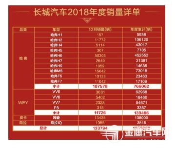 1月8日,長城汽車發(fā)布2018年12月產(chǎn)銷數(shù)據(jù)。數(shù)據(jù)顯示,長城汽車2018年12月銷量再創(chuàng)新高,共銷售新車13.38萬輛。至此,2018年長城汽車全年共銷售新車105.3萬輛,這是繼2016年和2017年后,連續(xù)第三年突破百萬銷量大關(guān)。其中,哈弗、WEY和長城皮卡以76.61萬輛、13.95萬輛和13.8萬輛的成績,分別奪得2018年SUV、中國豪華SUV和皮卡市場銷量冠軍。在國內(nèi)汽車市場整體遇冷的情況下,長城汽車用實(shí)際行動(dòng)為市場帶來濃濃暖意。  跑贏車市大盤 長城汽車再創(chuàng)百萬輝煌 2018年,在國內(nèi)整體經(jīng)濟(jì)下行的壓力下,國內(nèi)汽車市場28年來首次出現(xiàn)下滑。2018年1-11月,中國汽車整體銷量下降1.65%。盡管全年數(shù)據(jù)尚未發(fā)布,但據(jù)中國汽車工業(yè)協(xié)會預(yù)測,2018年國內(nèi)汽車市場銷量下降幅度為3%。