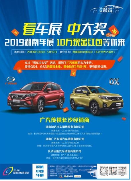 5月8日至12日,2019湖南車展將在湖南國際會(huì)展中心(長沙世界之窗旁)盛大舉辦。廣汽傳祺將重磅出擊2019湖南車展,并全力支持“看車中大獎(jiǎng)”活動(dòng)。本屆湖南車展,組委會(huì)攜手廣汽傳祺,為買票看車展的觀眾準(zhǔn)備了10萬元現(xiàn)金紅包大獎(jiǎng),最高5000元的現(xiàn)金紅包大獎(jiǎng),說不定就是你的哦!  記者最新獲悉,作為本屆湖南車展的戰(zhàn)略合作伙伴,廣汽傳祺將攜全系車型參展,并將推出車展的特別購車優(yōu)惠,車展現(xiàn)場(chǎng)還將與觀眾進(jìn)行福利多多的互動(dòng)活動(dòng),一定會(huì)給觀眾和消費(fèi)者帶來驚喜不斷!