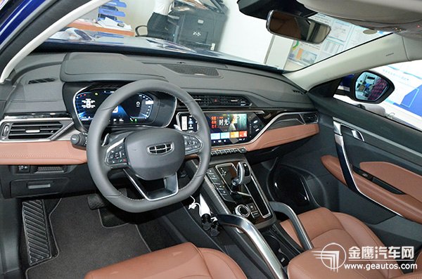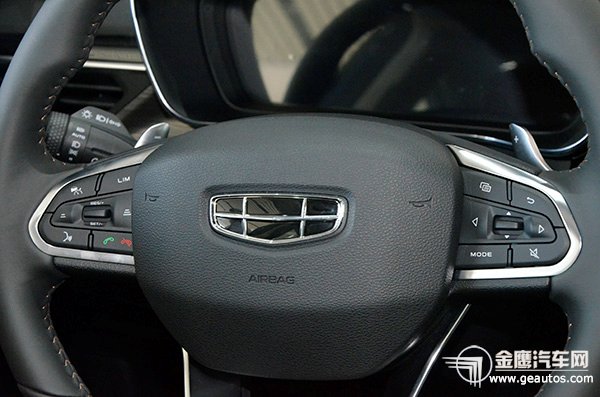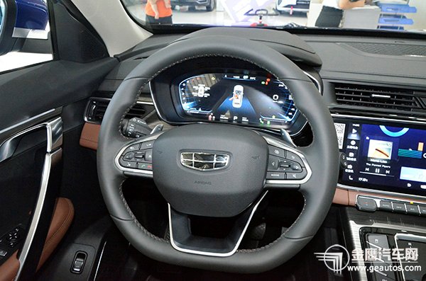三輻式方向盤采用平底式設(shè)計(jì),配有換擋撥片功能。  全新設(shè)計(jì)的航天科技電子擋桿和科技木紋氛圍燈,烘托出更具科技感的駕駛體驗(yàn)。  新車換上了12.3寸的全液晶儀表盤,效果清晰,顯示內(nèi)容豐富,還加入HUD抬頭顯示。  12.3寸的中控屏搭載了吉利最新的GKUI 19系統(tǒng),這套系統(tǒng)擁功能強(qiáng)大,在運(yùn)算速度、智能互聯(lián)上面都有全面提升,人機(jī)交互體驗(yàn)靈敏順暢。內(nèi)部集成了多媒體和導(dǎo)航,日程管理、應(yīng)用商城、全景影像和語(yǔ)音控制等功能。