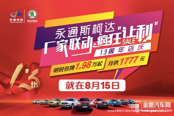 永通斯柯達(dá)十三周年店慶來啦! 別人沒有的給力政策 別人沒有的廠家特供車 明銳店慶特供版 包牌首付1.98萬元起 月供低至1777元