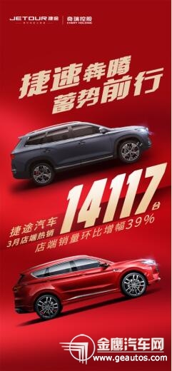 4月2日,奇瑞捷途發(fā)布3月銷量快報,整體店端銷量達到14117輛,同比增長172%,環(huán)比增長39%,保持了較為強勁的增長勢頭,繼續(xù)創(chuàng)造中國新銳SUV品牌銷量增長新速度。